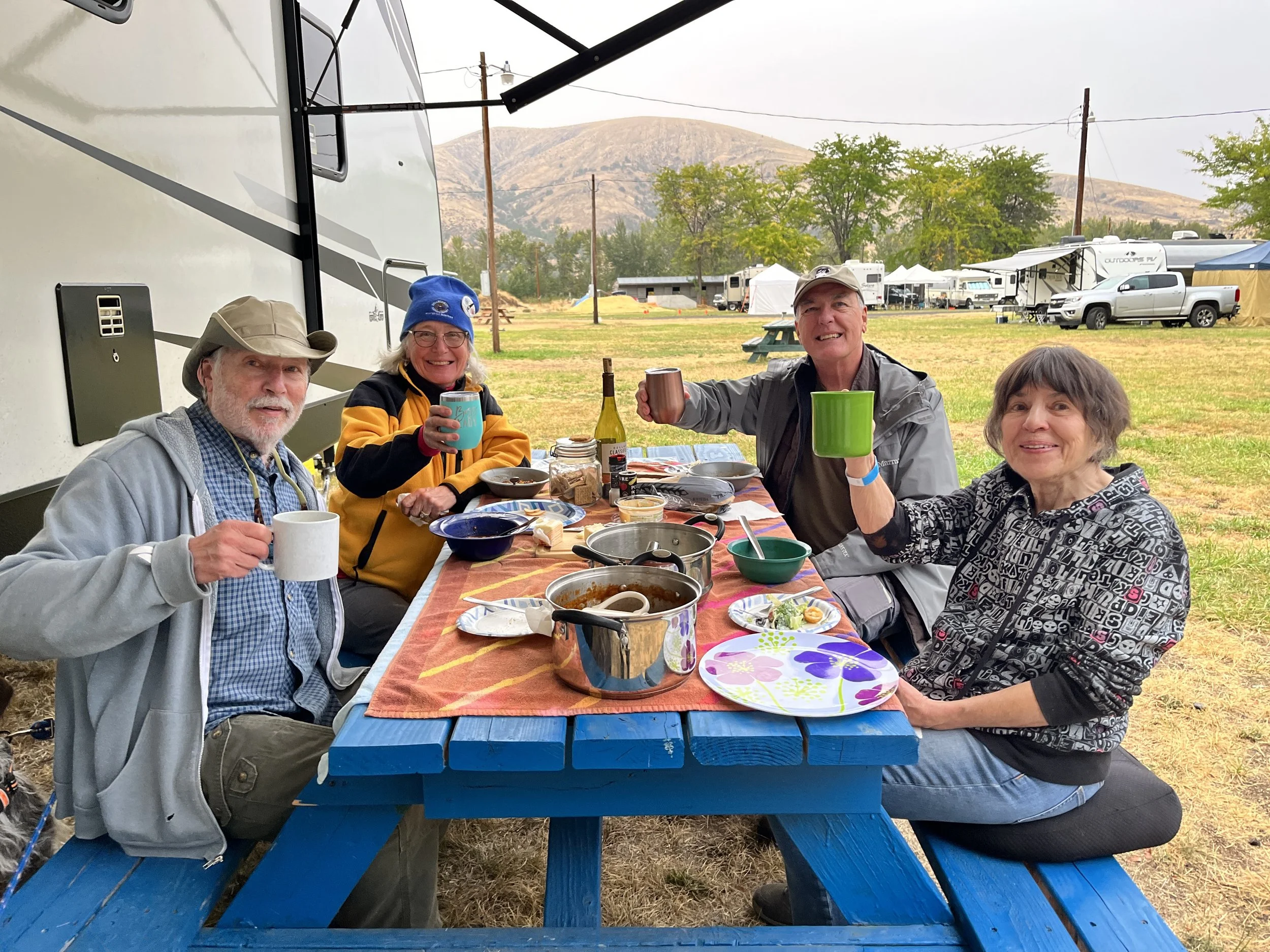 Dry camping without hook-ups is at no charge this year for Friday night, and Saturday, into Sunday morning. Camping spots will be available on a first-come, first-served basis. If you arrive before Friday, or want to stay past the end of the festival, you will then pay Wasco County Fairgrounds directly for your extended stay.